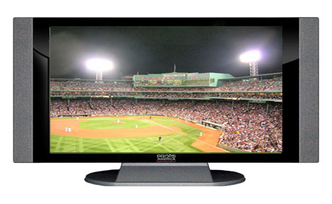 22 Inch HD TV Prop with Side Speakers in Gloss Black on Matte Silver & Screen Image #096 Baseball Game 2