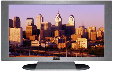 52" Silver Matte Plasma/LED/LCD TV Prop with Base & Screen Image #110 Philadelphia at Sunset